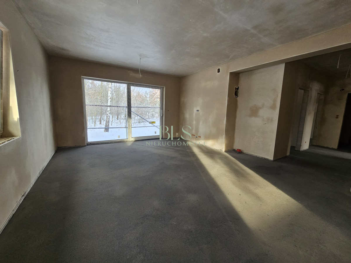 - przestronny salon z jadalnią i wyjściem do ogrodu, w salonie kominek