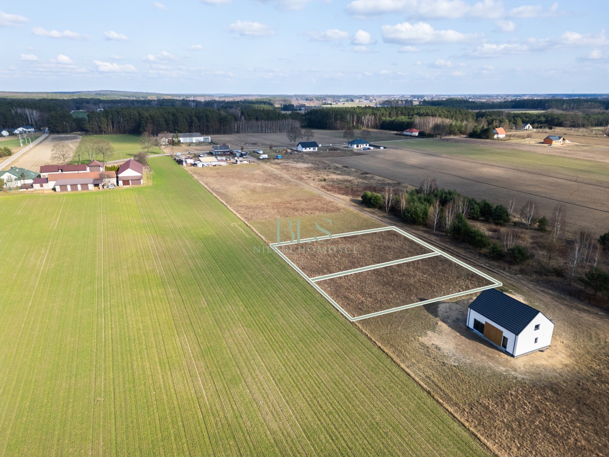 Działki położone są w spokojnej, zielonej okolicy, w otoczeniu lasów i terenów rekreacyjnych, a jednocześnie w bliskiej odległości od szkoły podstawowej i przystanku lokalnej komunikacji, co zwiększa atrakcyjność dla przyszłych mieszkańców.